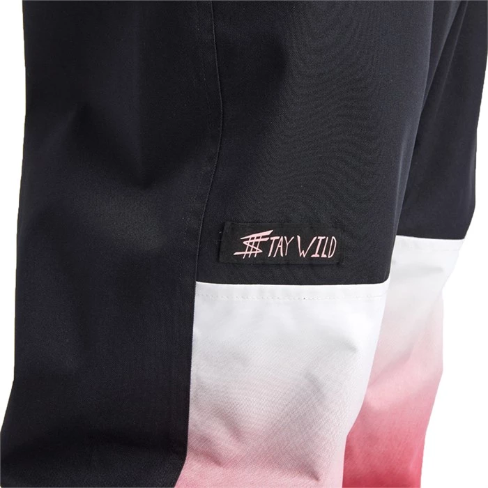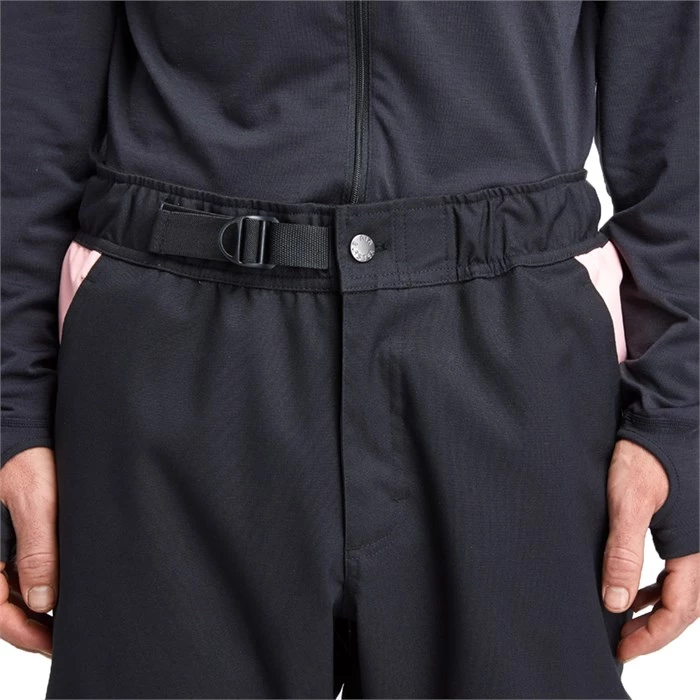 Relaxed snowboard fit with elastic bottom and stretch fabric.